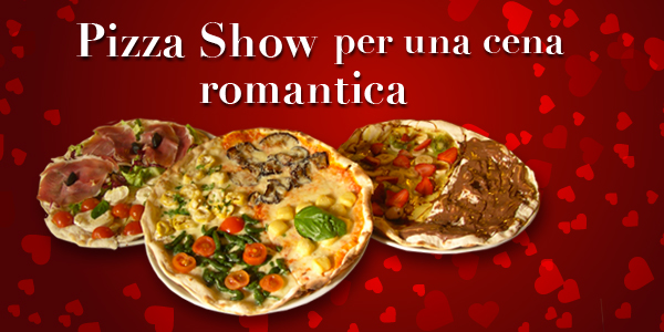 Ottima idea per una cena romantica con menù Pizza Show. Uno spettacolo di sapori tradizionali della cucina italiana sulla pizza.